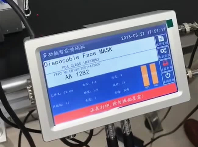 全自動(dòng)口罩噴碼機(jī)采用TIJ2.5熱發(fā)泡噴頭,主頻可達(dá)1.4GHz四核處理器,噴印距離:2-5mm可保證最佳噴印質(zhì)量。系統(tǒng)運(yùn)行穩(wěn)定性強(qiáng),觸屏操作有絲綢滑過般的流暢感。